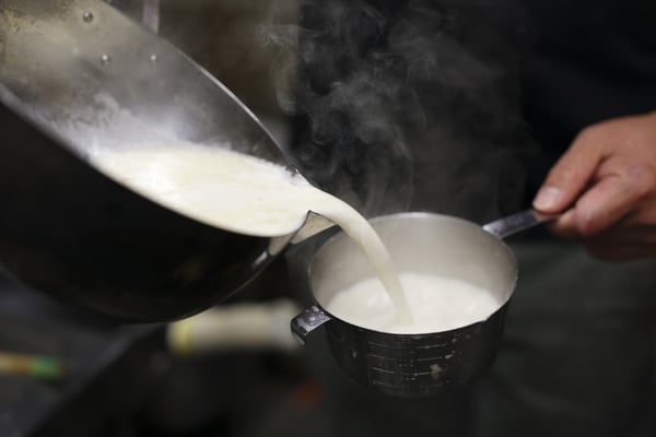 白湯とは白く濁ったスープのことです。白湯スープの特徴は豚骨を高温で煮込む事により、コラーゲンが乳化剤となり油と交わる事で乳化がおこり、真っ白な白湯スープが出来上がります。